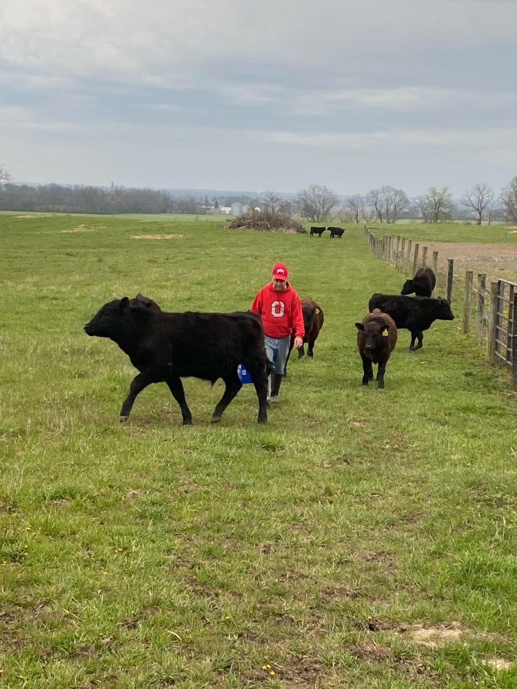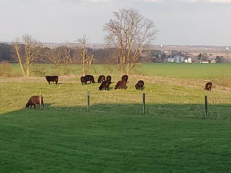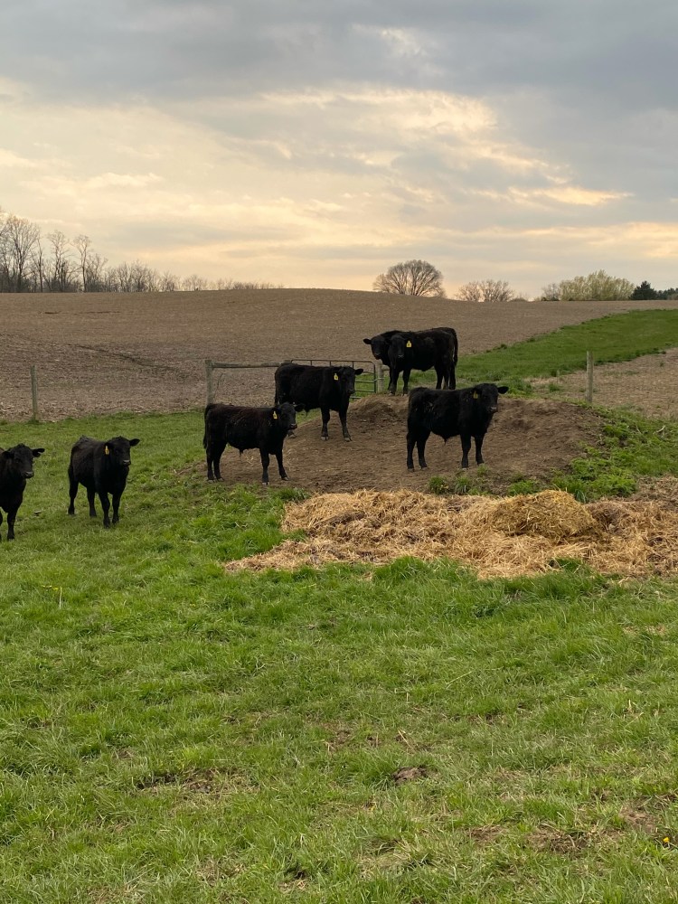 Together with our sons, we raise Angus beef on our pasture. All beef are antibiotic and hormone free. They are grass fed and then grain finished. Grain finishing gives the meat marbling that has improved taste for most people.